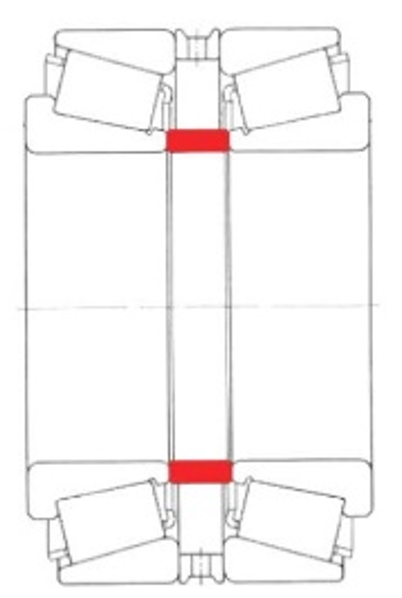 Nella pratica esistono diversi metodi per accoppiare e precaricare i cuscinetti a rulli conici: back-to-back (disposizione O), face-to-face (disposizione X), tandem (per l’aumento della capacità di carico assiale), nonché accoppiamenti con gioco, con precarico rigido o con precarico a molla. Nel caso di set accoppiati in fabbrica (set duplex), il precarico oppure il gioco assiale sono predefiniti mediante anelli distanziatori forniti a corredo.