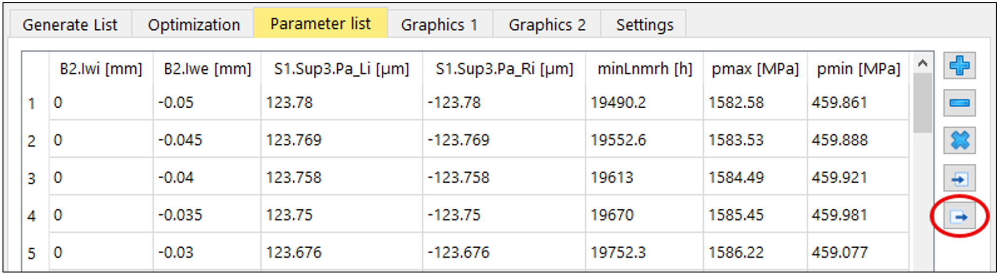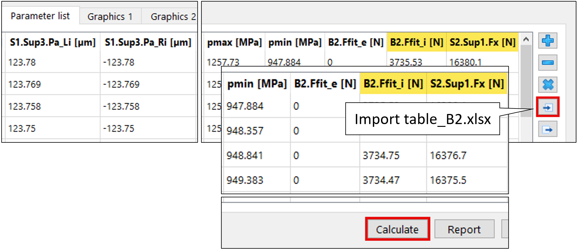 Parametri quali la forza di montaggio B2.Ffit o la forza assiale sulla ghiera dell’albero S2.Sup1.Fx possono essere, in questa fase, aggiunti ulteriormente all’elenco dei parametri (figura 25).