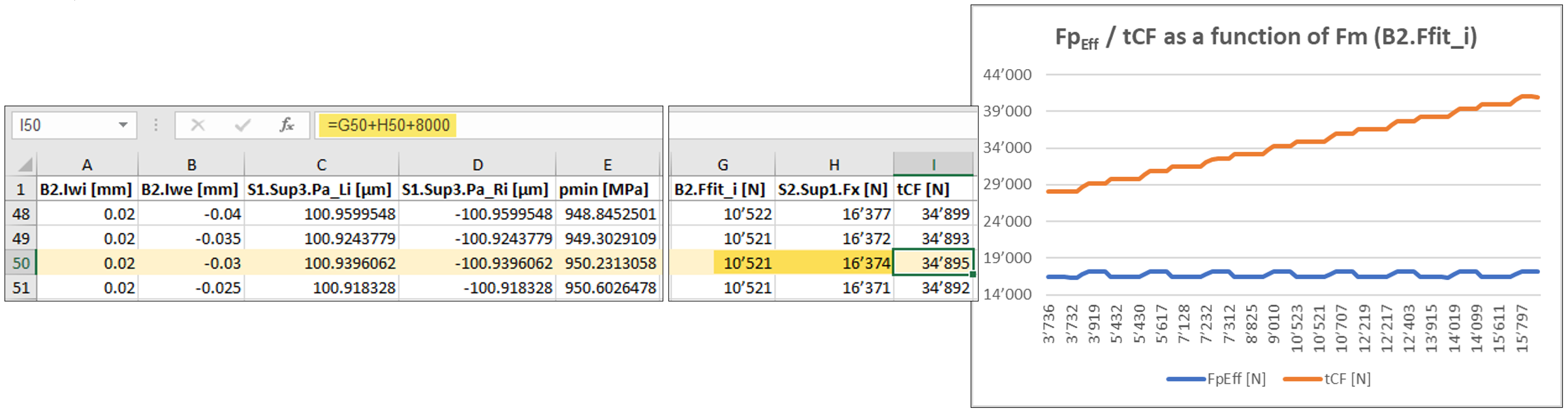 Mediante l’aggiunta di un valore costante per Fs secondo il punto 4.6.3 in un file di esportazione (figura 27), si ottiene ora uno strumento pratico per la determinazione rapida della forza di serraggio della ghiera sull’albero associata a una specifica lunghezza del distanziale.