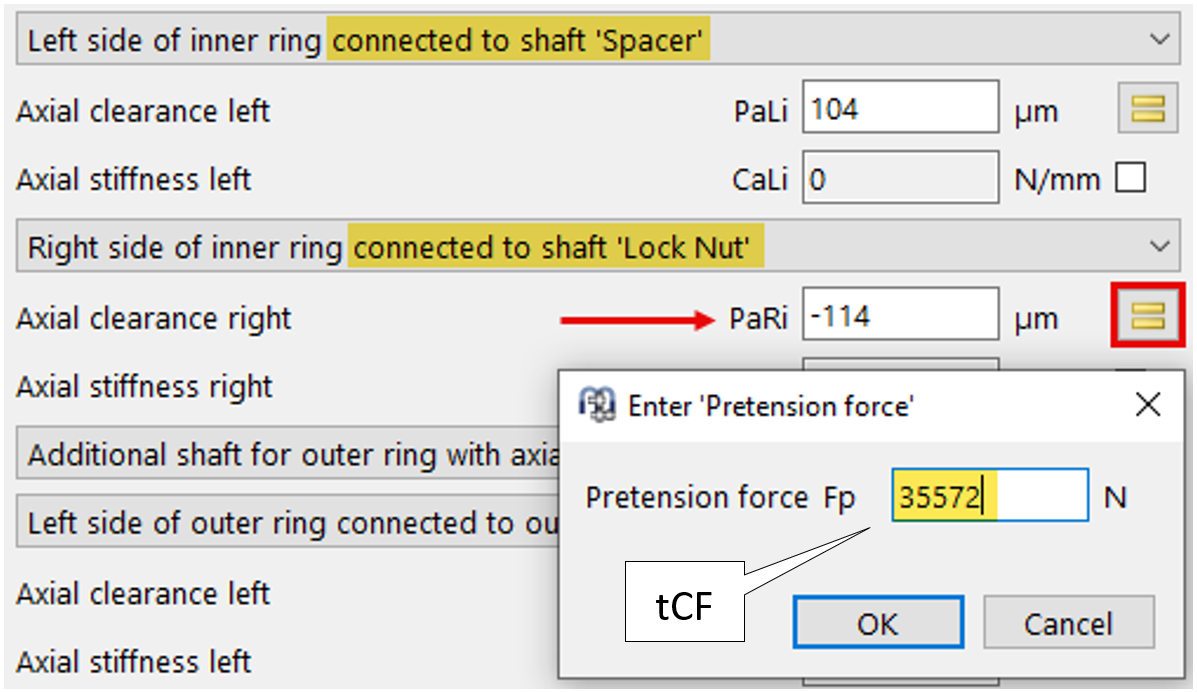 Poiché la forza di serraggio della ghiera sull’albero è ora nota, essa può essere impostata in MESYS in modo agevole tramite il pulsante “=” del parametro PaRi (figura 29).