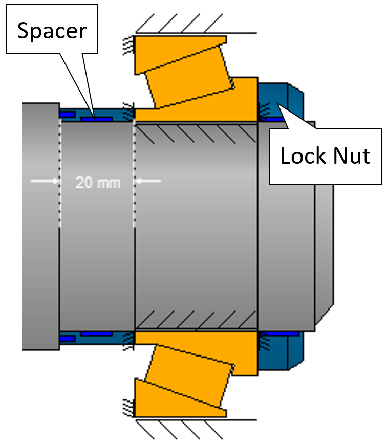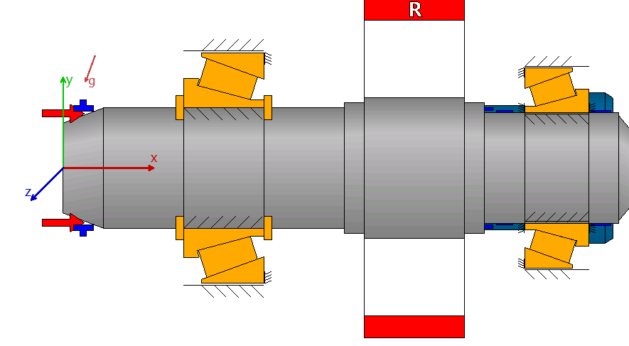 Il presente documento illustra la progettazione di una coppia di cuscinetti a rulli conici con precarico rigido in disposizione O, per il supporto dell’albero di uscita di un riduttore in un’applicazione navale. L’obiettivo è determinare direttamente il precarico necessario dei cuscinetti mediante il Calcolo dell’Albero MESYS, tenendo conto di tutte le influenze misurabili derivanti da una condizione di esercizio definita. Un precarico adeguato dei cuscinetti viene definito mediante la specifica dello spostamento di precarico.