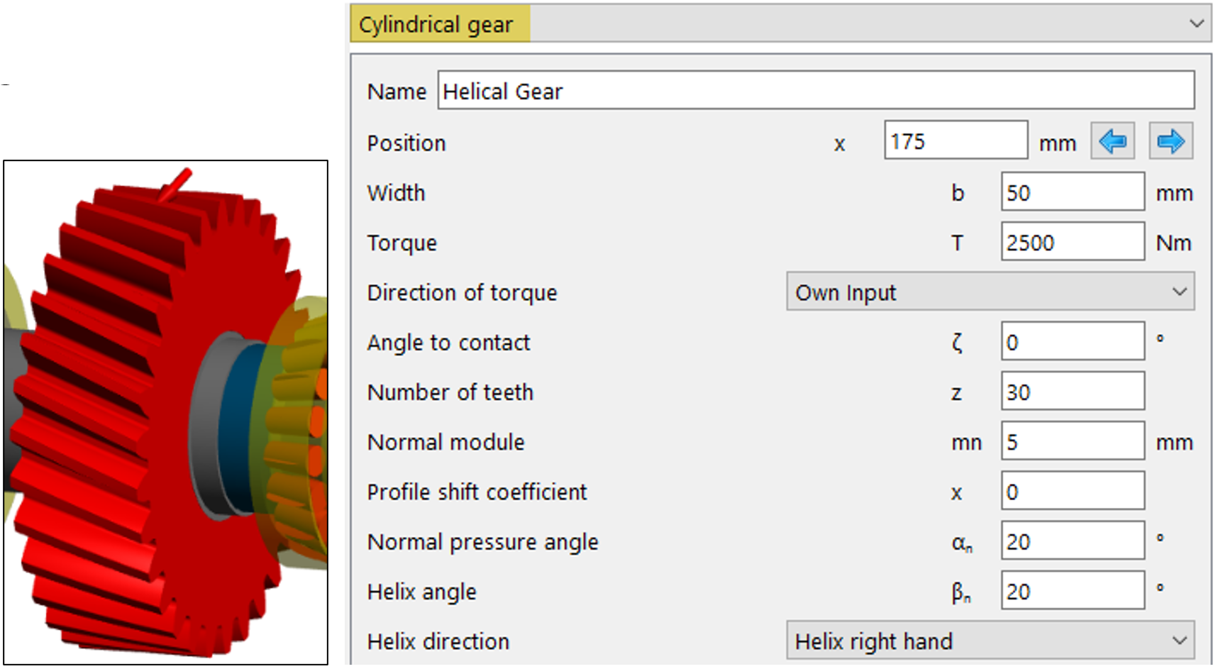 – Ingranaggio con b = 50 mm; z = 30; mn = 5; angolo d’elica βn = 20°