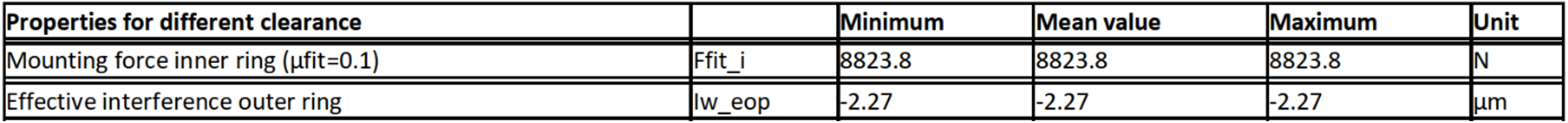 La classe di precisione, gli accoppiamenti, le rugosità e i diametri dell’alloggiamento secondo la figura 11 sono presi in considerazione. Le impostazioni riportate nel report delle tolleranze generano, per B2 nello spettro di carico – elemento 1, le forze di montaggio descritte al punto 4.6.2.